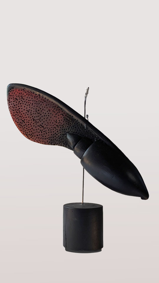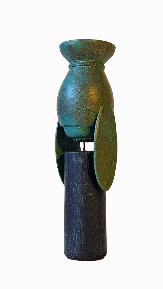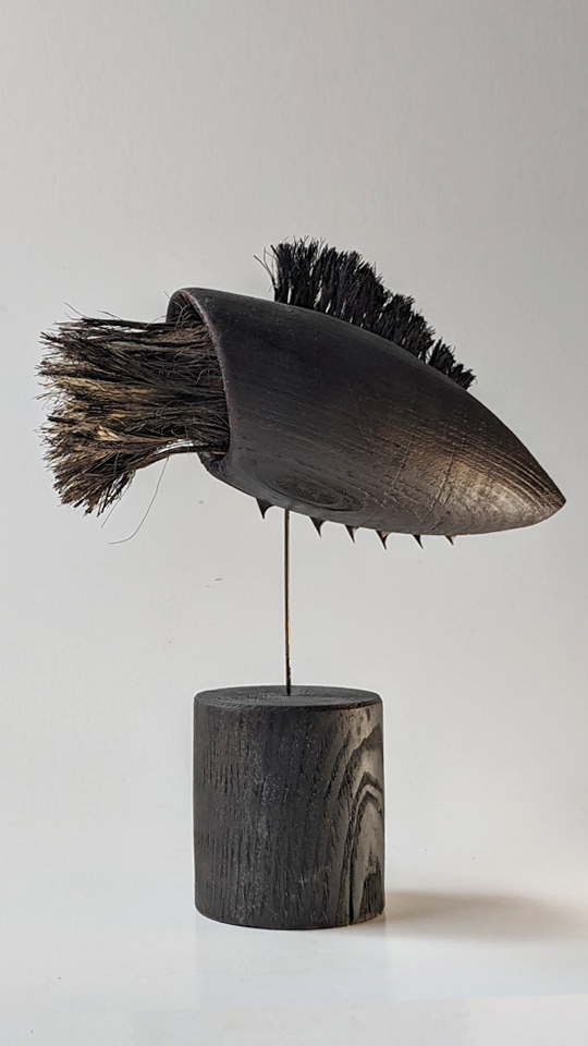 De objecten zijn gemaakt van materiaal dat ik in en rond mijn huis vond: (afval)hout, blik, touw en fietsspaken.